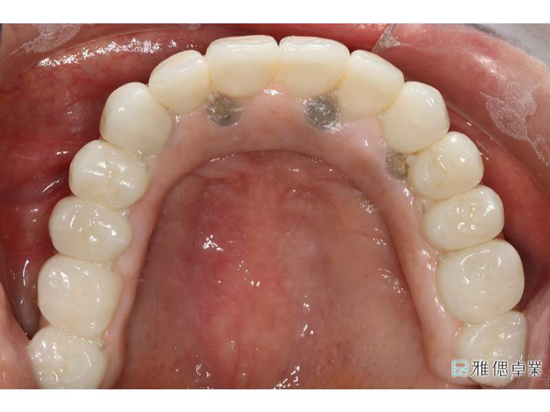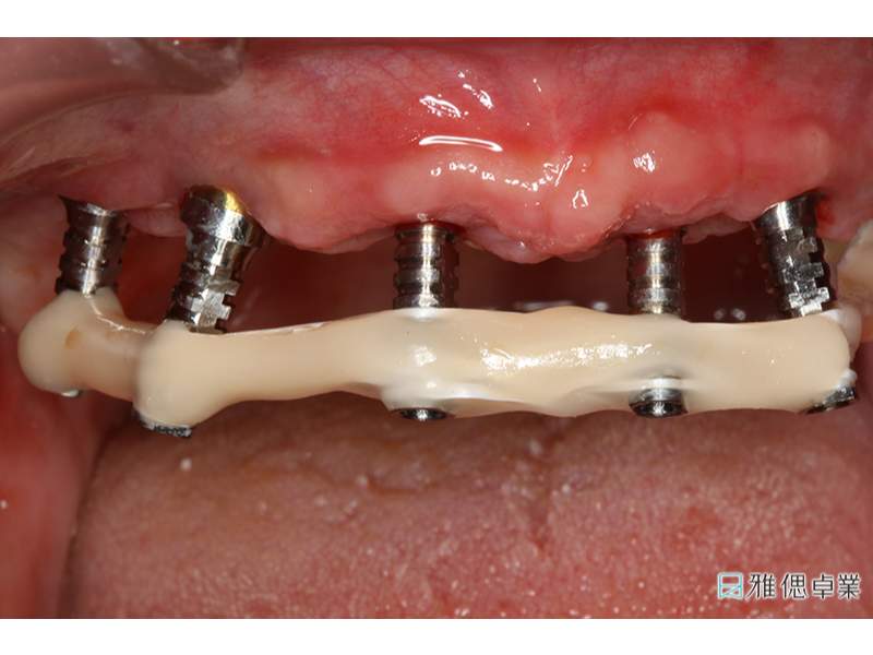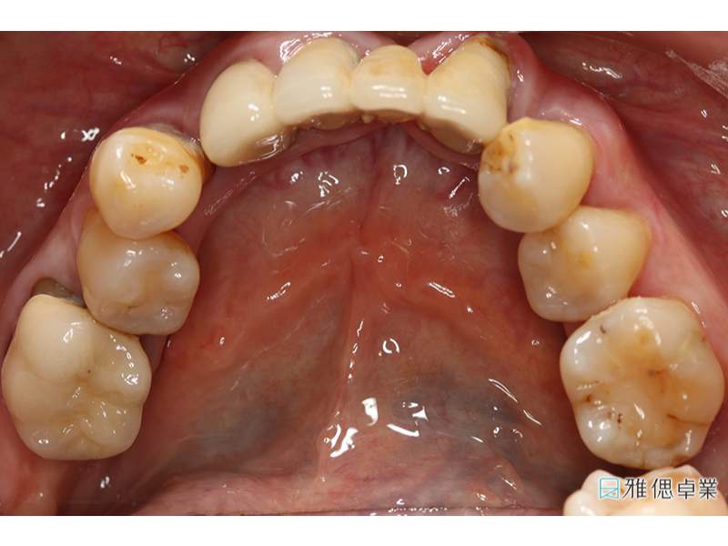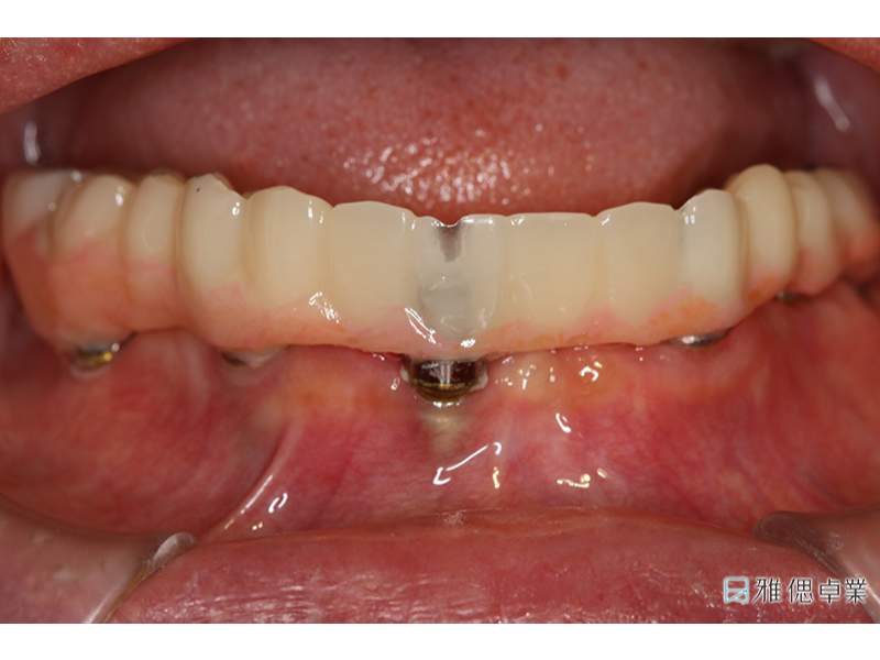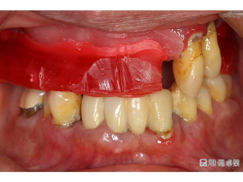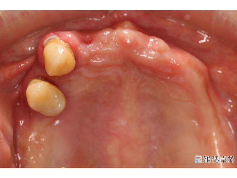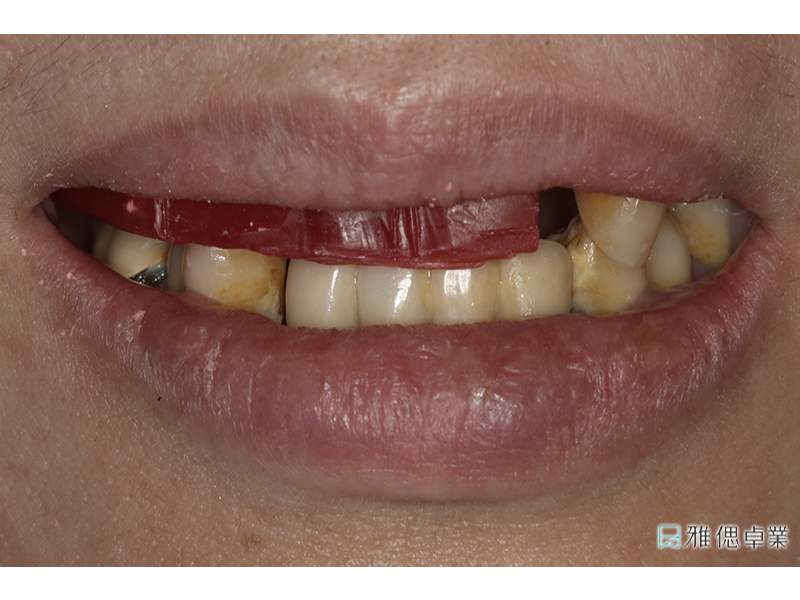 平常需要佩戴活動假牙,但活動假牙又容易鬆動、又容易有食物殘渣的堆積,再加上戴著活動假牙時發音咬字也沒有那麼清晰,其實個案說常常都是戴不住的狀態,對於吃東西跟參加社交活動,在生活品質上已造成影響。
