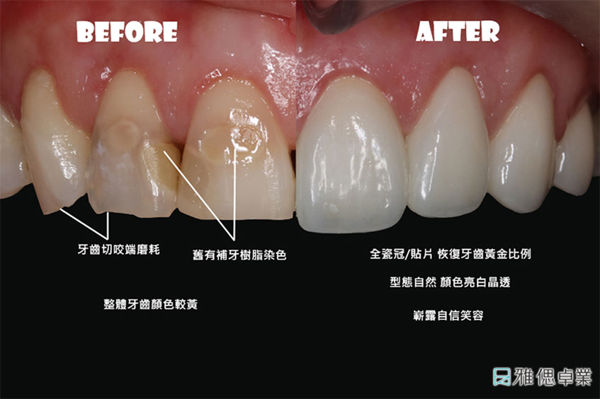 不僅可改善牙齒的外觀(形狀、排列長度、顏色),且具有自然牙的色澤質感。