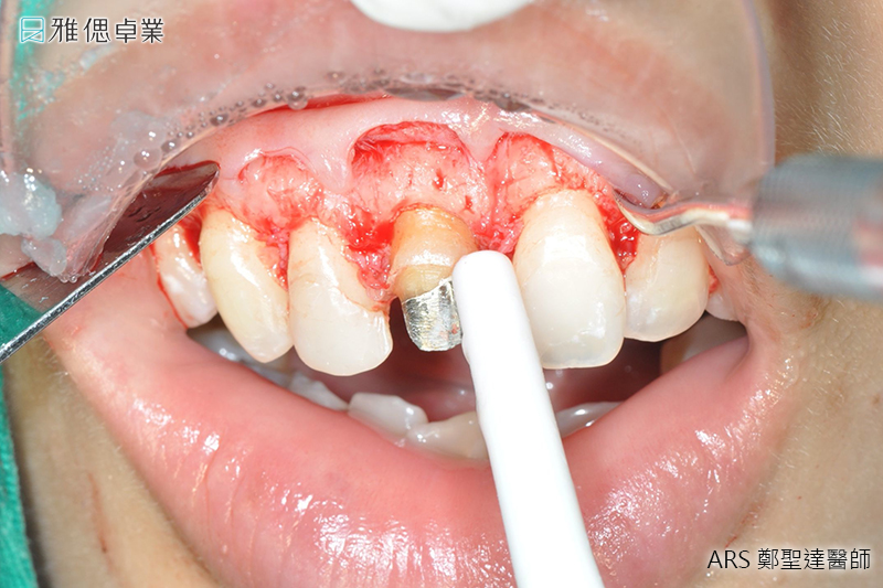 - 必須透過「牙齦刮除術」以手術刀直接刮除牙齦表面